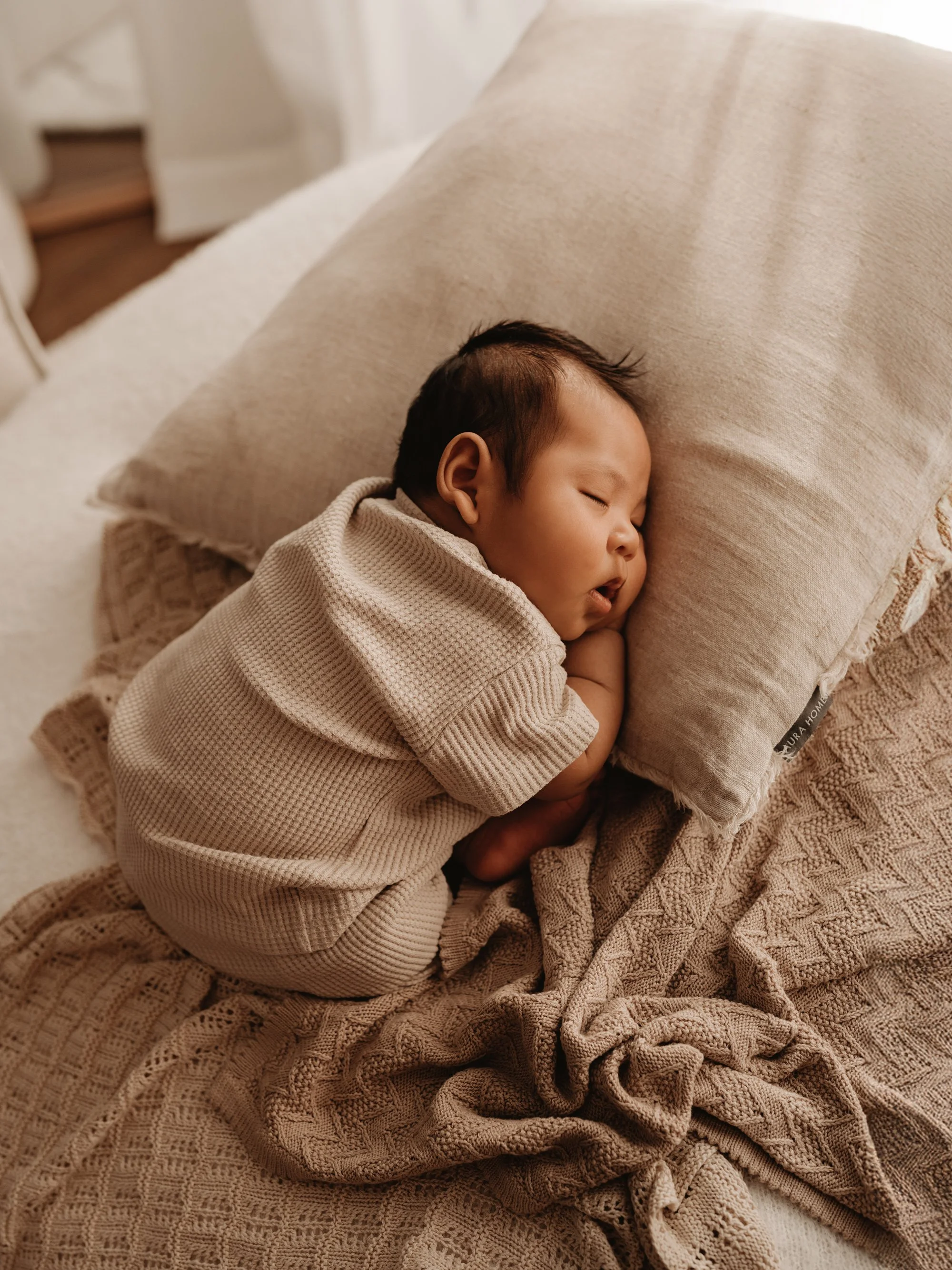 Coming into your session you will be greeted with a beautiful cosy natural light studio where we will capture some heartfelt, real and raw moments between you and your little family. Studio sessions are held in my studio in Hoxton Park. It is a very neutral setting with Browns, Creams , White with a splash of Olive Greens and Burnt Orange. I love these earthy tones as they create such a cosy homey feel.